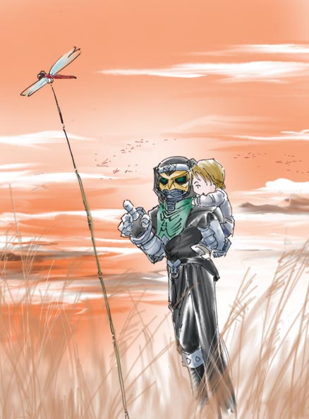 デネブが「侑斗のいない時間」中、デンライナーに乗車していて鬼のようにみんなの世話をやいていたとき、コハナの世話までやいていたので思わずかきなぐってしまいました。