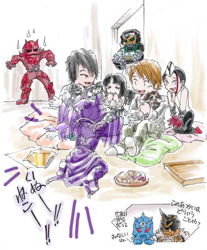 ■何でか白羽取りの練習をする良太郎とタロズ。リュウタ、オーナーにおいた…でもやっぱりリュウタもオーナーにはかなわないのですな。リュウタ、懲りなさい、ね?