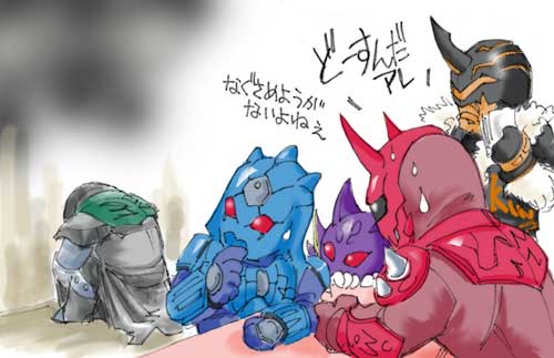↓これは前回、侑斗消えた!と思ったときに一瞬アタマをかすめた妄想。まあ、間違い絵ですね。