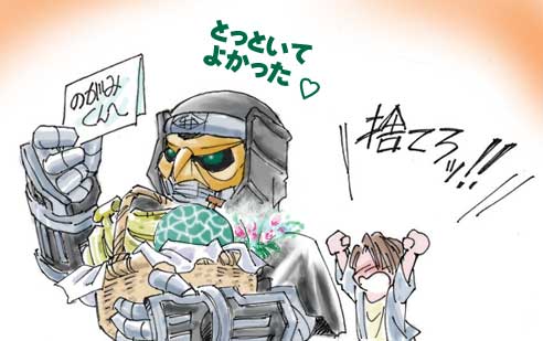 ■そうとう自分の姿に納得がいかないモモタロス、しかもイメージが「桃太郎」ということで、自分のことは棚に上げて良太郎のセンスを批判する。しかしかっこよさにこだわるモモタロスのセンスは、多分暴走族系だろうと自分的に推測している。