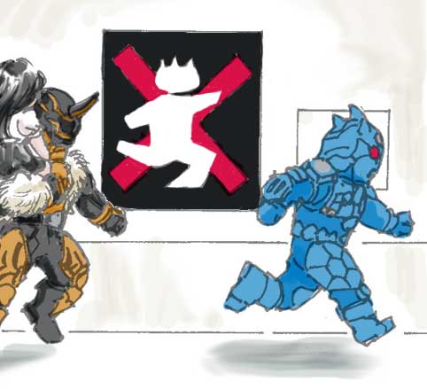 ターミナルの中を走り回るタロウズのバックに「イマジン走るな」の標識があったように見えましたが…。